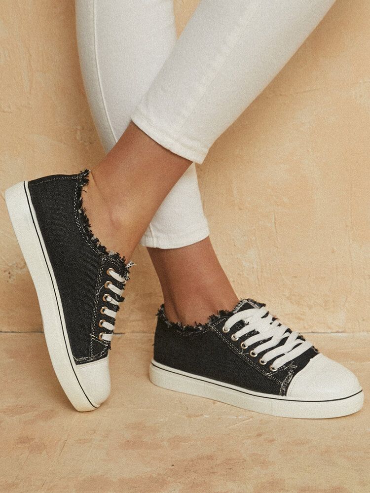 Women Casual Canvas Comfy Lace Up Flat Shoes