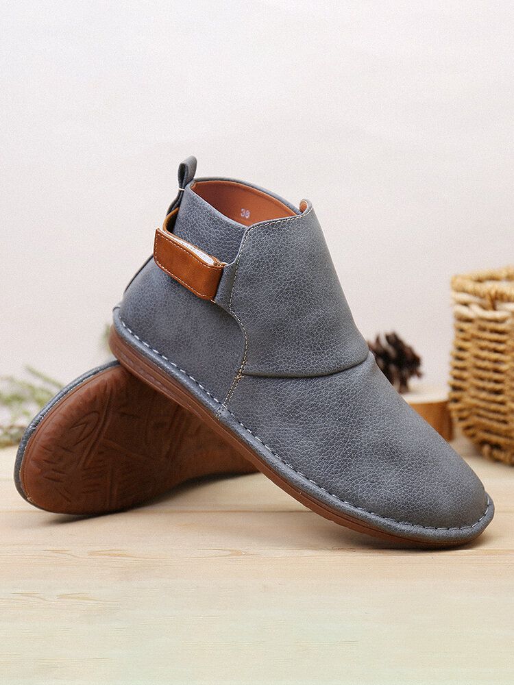 Hook Loop Splicing Slip Resistant Slip On Flat Ankle Casual Short Boots For Women
