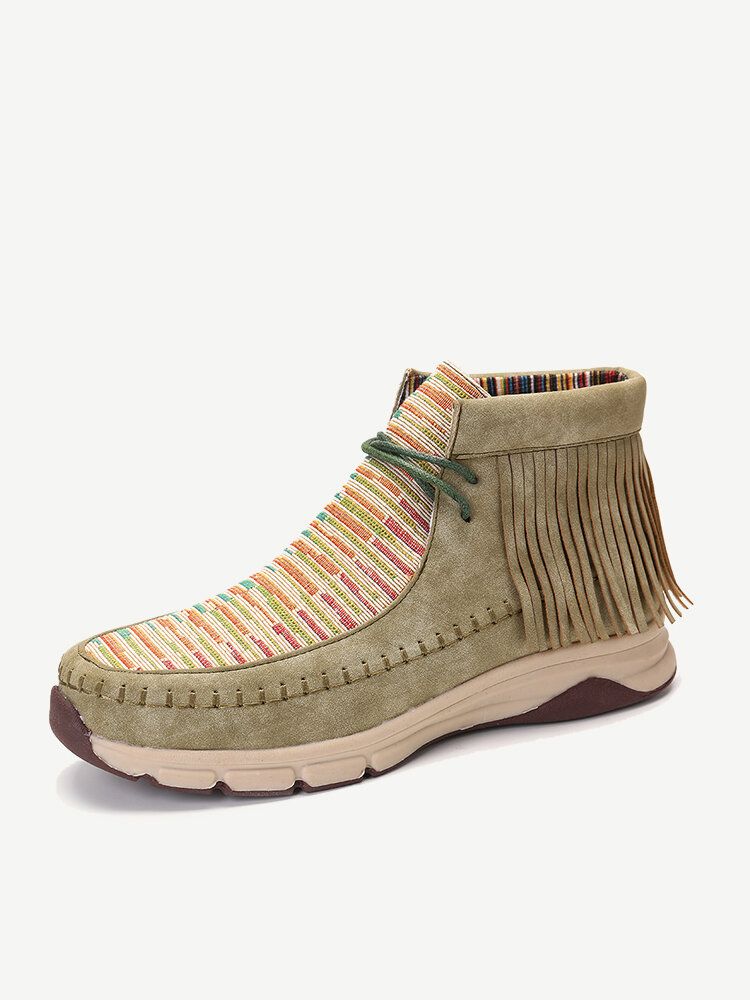 Tassel Stitching Colorful Stripe Outdoor Slip Resistant Ankle Boots