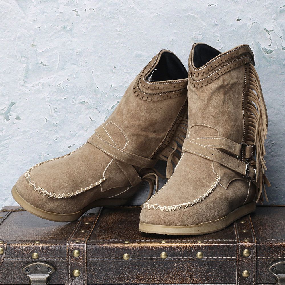 Women Casual Suede Stitching Tassel Flat Short Boots