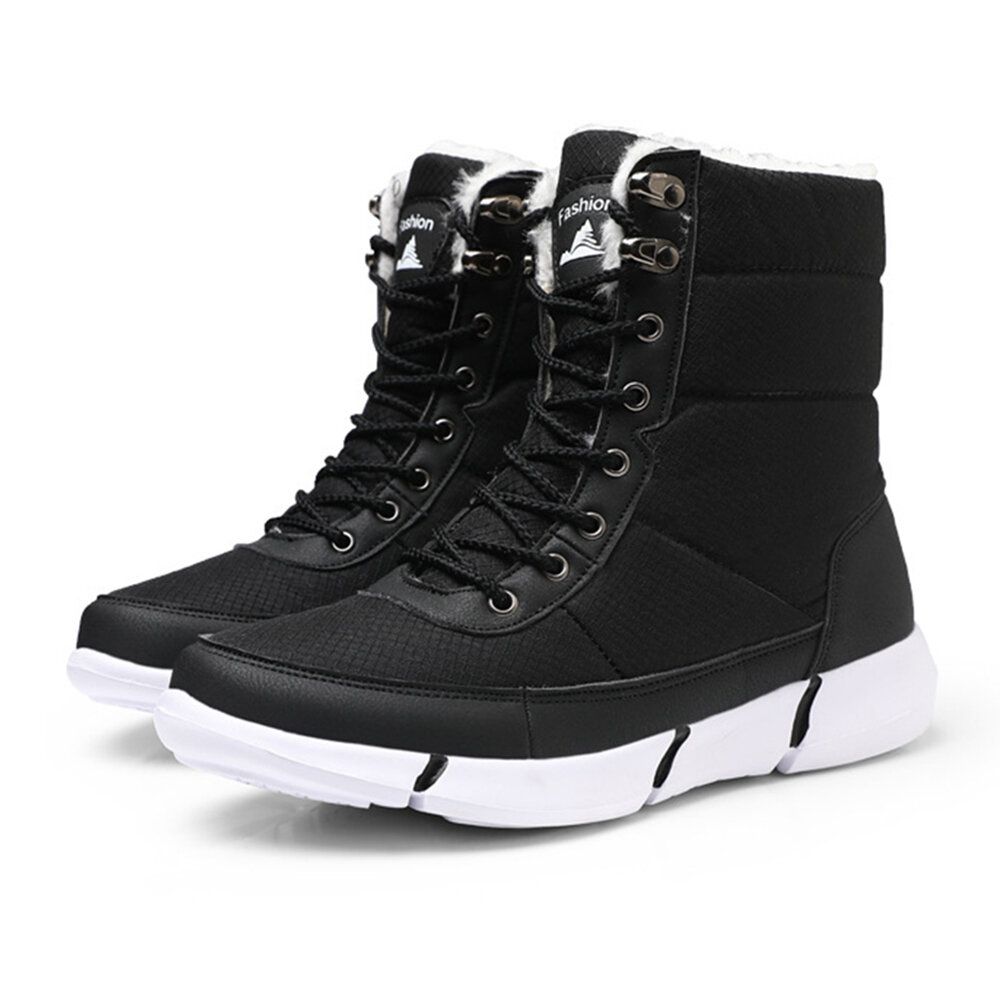 Women Large Size Color Match Splicing Waterproof Lace Up Mid Calf Snow Boots