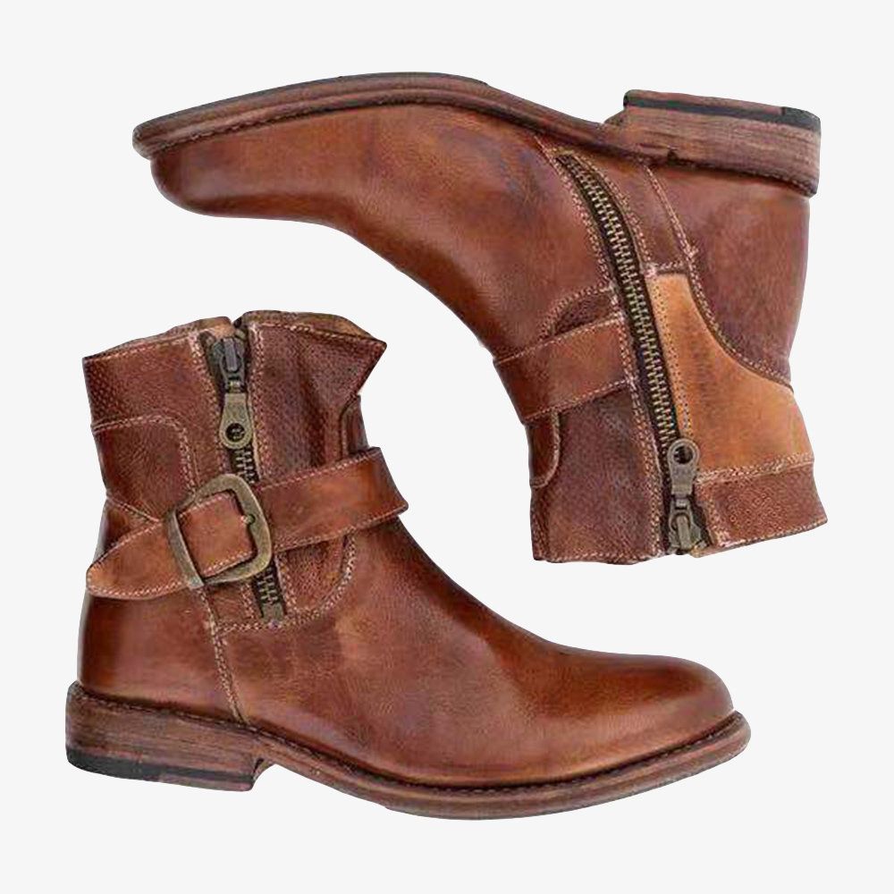 Women Buckle Decoration Zipper Cowbooy Western Short Boots