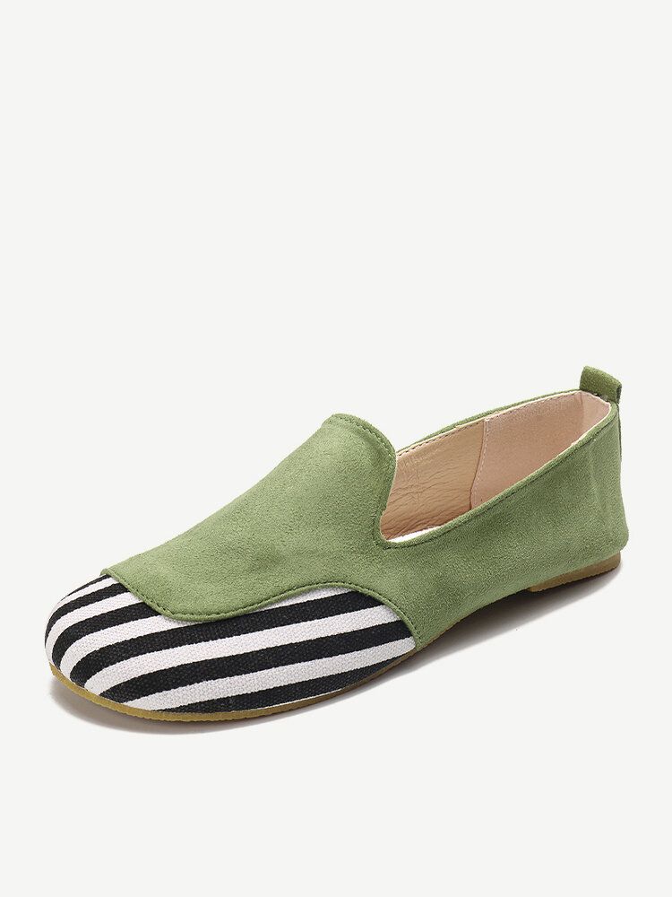 Large Size Women Retro Round Toe Splicing Slip On Flat Loafers
