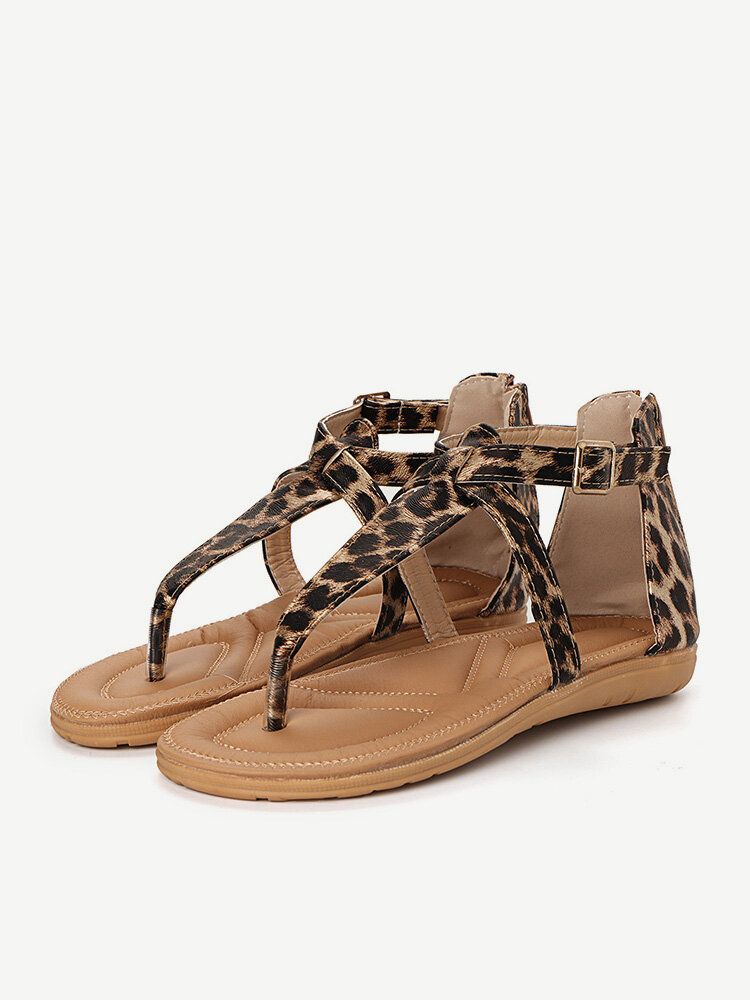Women Casual Leopard Flip Flops Zipper Flat Sandals