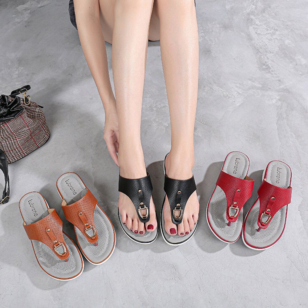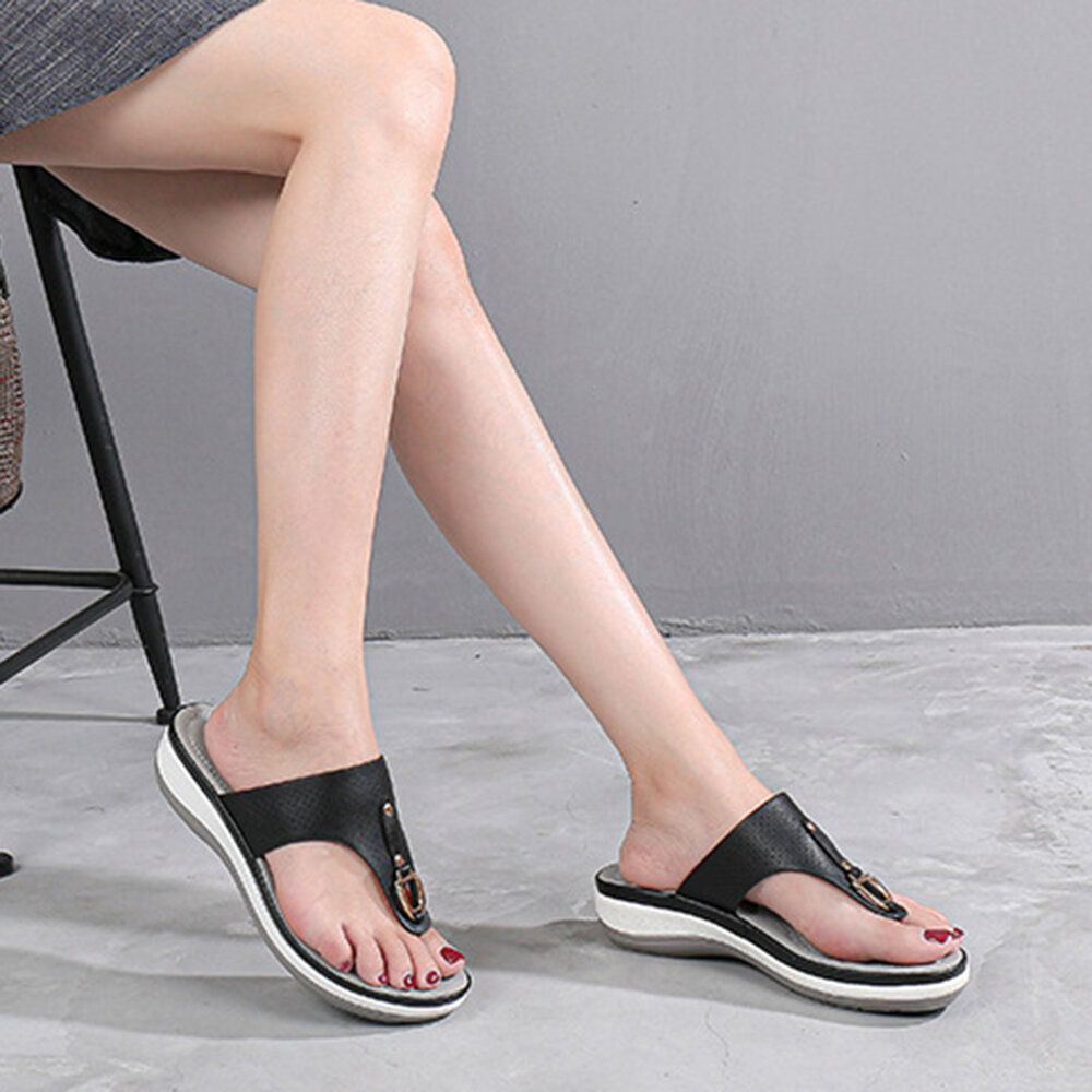 Women Summer Metal Decoration Flip Flops Comfy Clip Toe Sandals