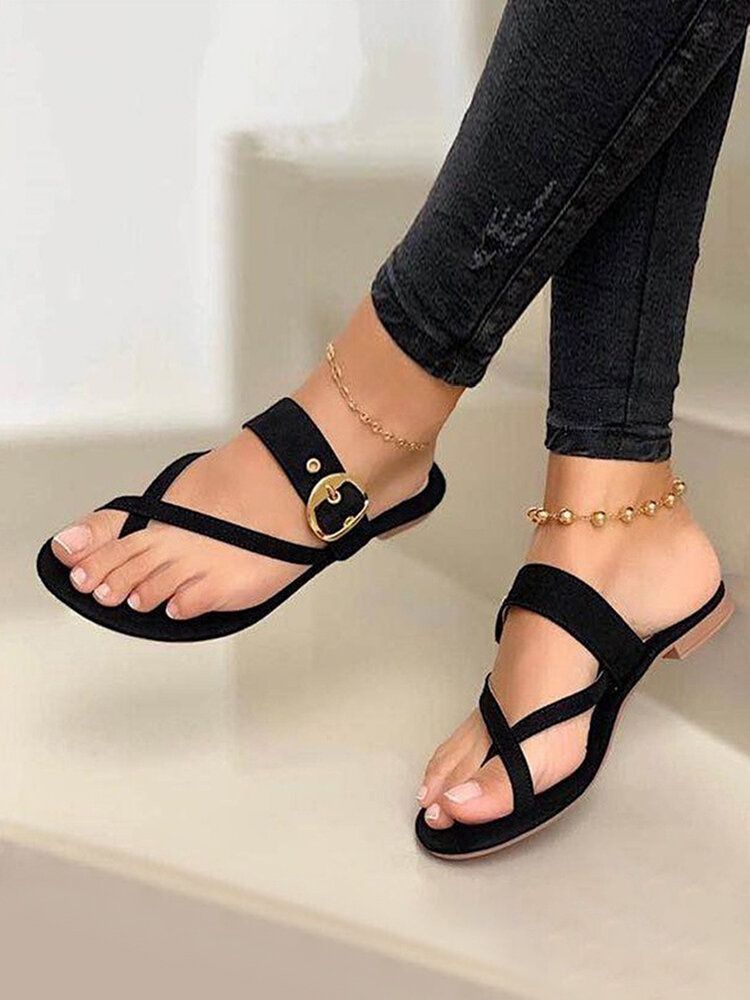 Plus Size Women Casual Summer Vacation Belt Buckle Embellished Thumb Slippers
