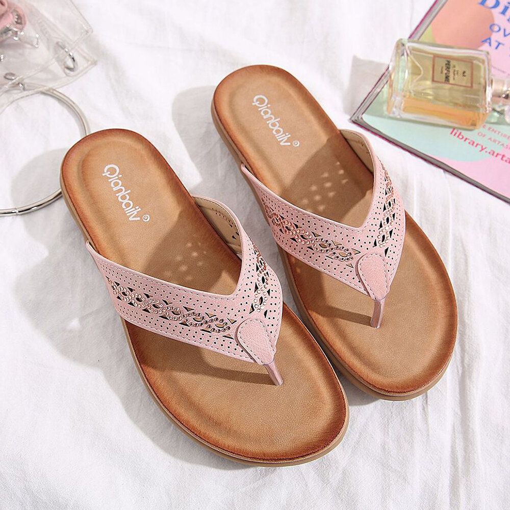 Rhinestone Clip Toe Holiday Hollow Out Flip Flops Beach Slippers