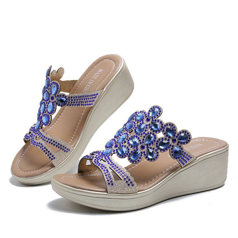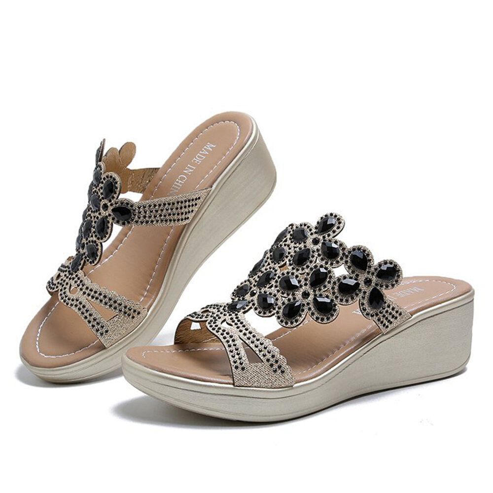 Women Rhinestone Decor Comfy Platform Wedges Slippers