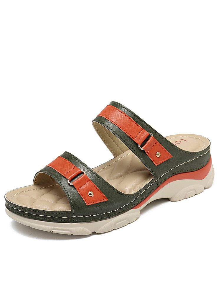 LOSTISY Stripe Slippers Color Block Stitching Women Beach Wedges Slippers