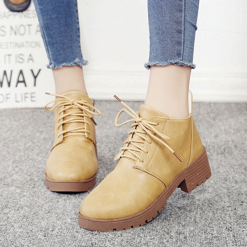 Stacked Heel Lace Up Ankle Boots