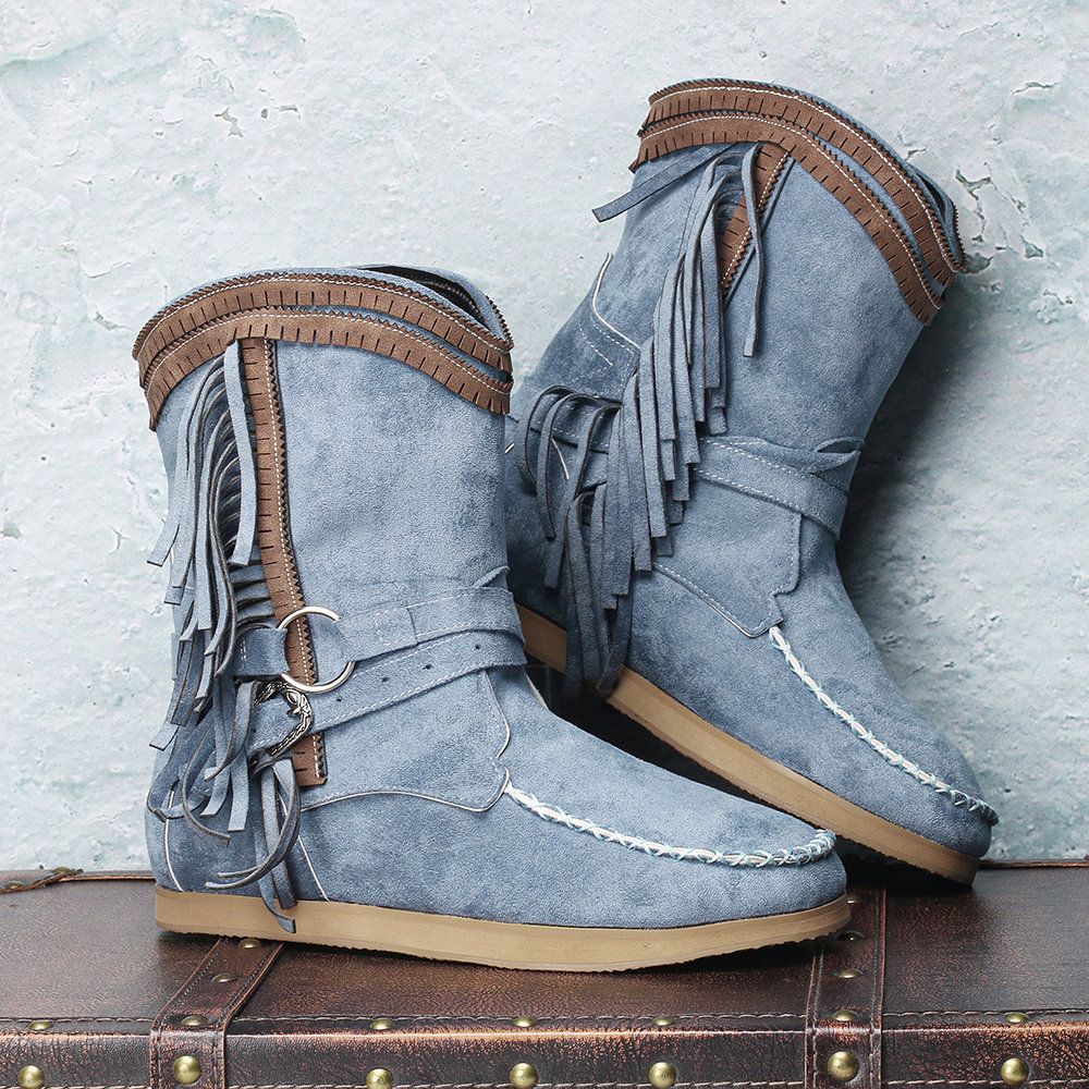 Women Casual Suede Stitching Tassel Flat Short Boots
