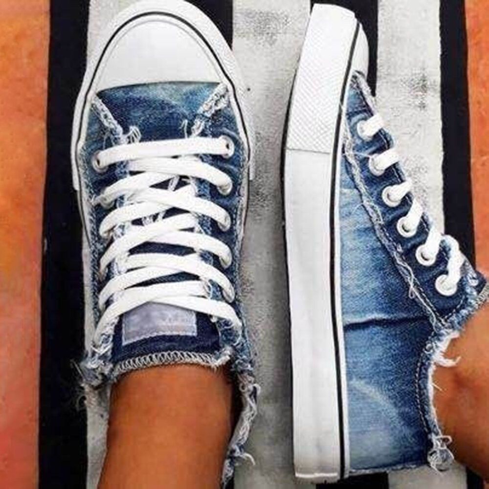 Women Casual Canvas Comfy Lace Up Flat Shoes