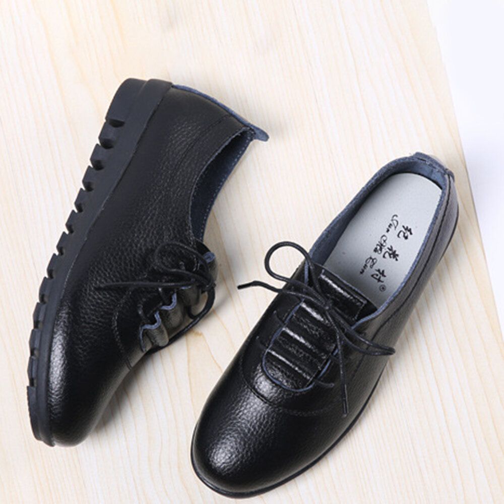 Women Lace-up Leather Solid Color Soft Sole Flat Shoes