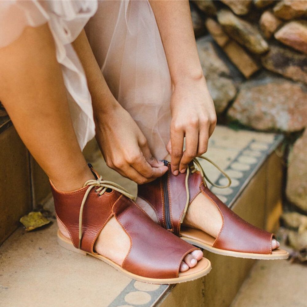 Women Hollow Out Comfy Retro Size Zipper Casual Flat Sandals