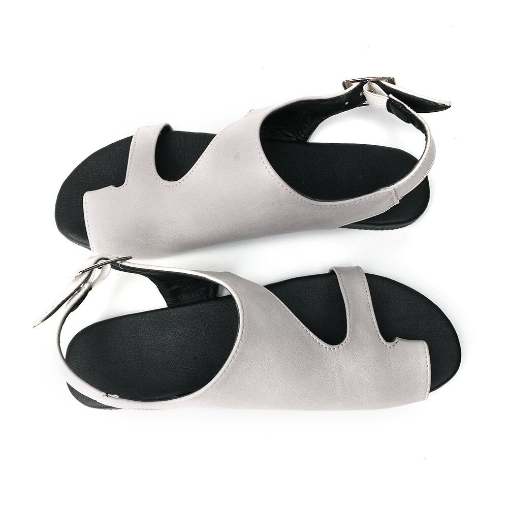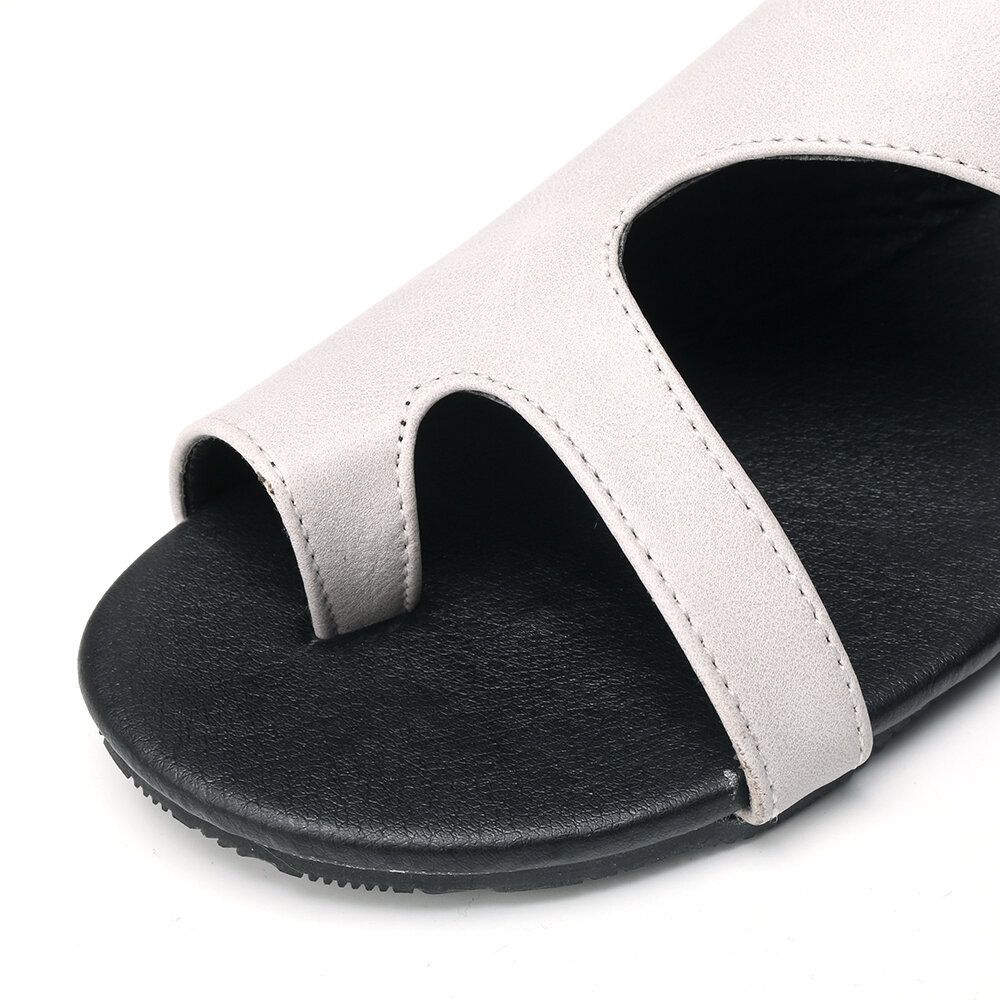 Plus Size Women Casual Clip Toe Hollow Black Buckle Flat Sandals