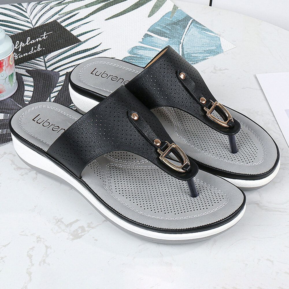 Women Summer Metal Decoration Flip Flops Comfy Clip Toe Sandals