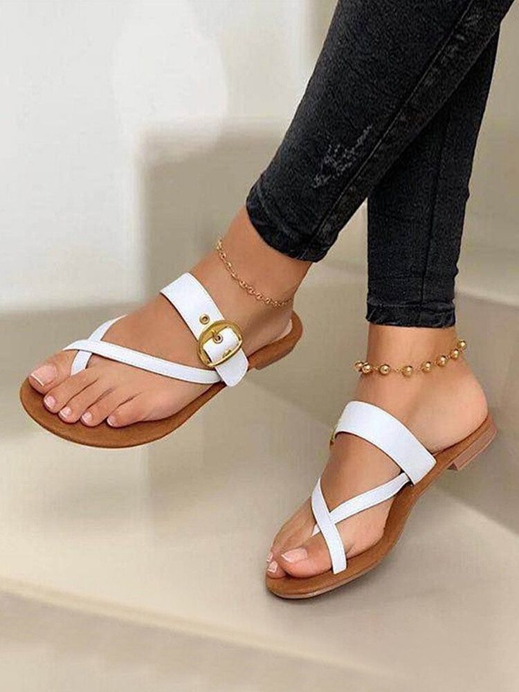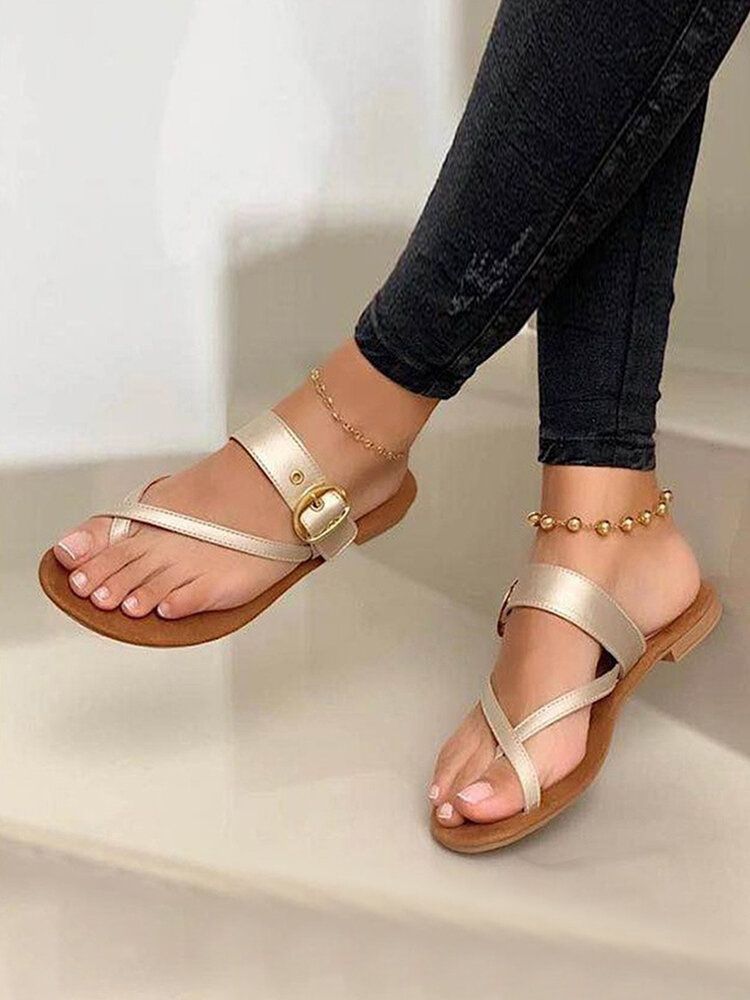 Plus Size Women Casual Summer Vacation Belt Buckle Embellished Thumb Slippers