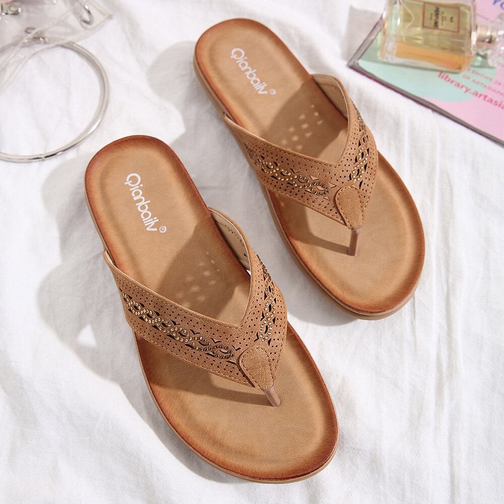 Rhinestone Clip Toe Holiday Hollow Out Flip Flops Beach Slippers