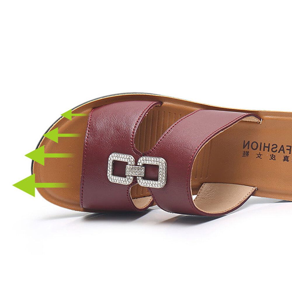 Women Beach Leather Rhinestone Hollow Soft Comfy Slide Slippers