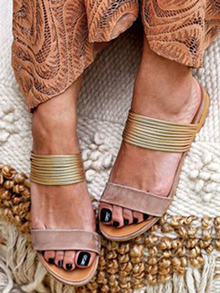 Women Large Size Two Part Open Toe Comfy Flat Slippers